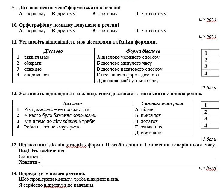 У комплекті є відповіді, критерії оцінювання, самооцінювання.