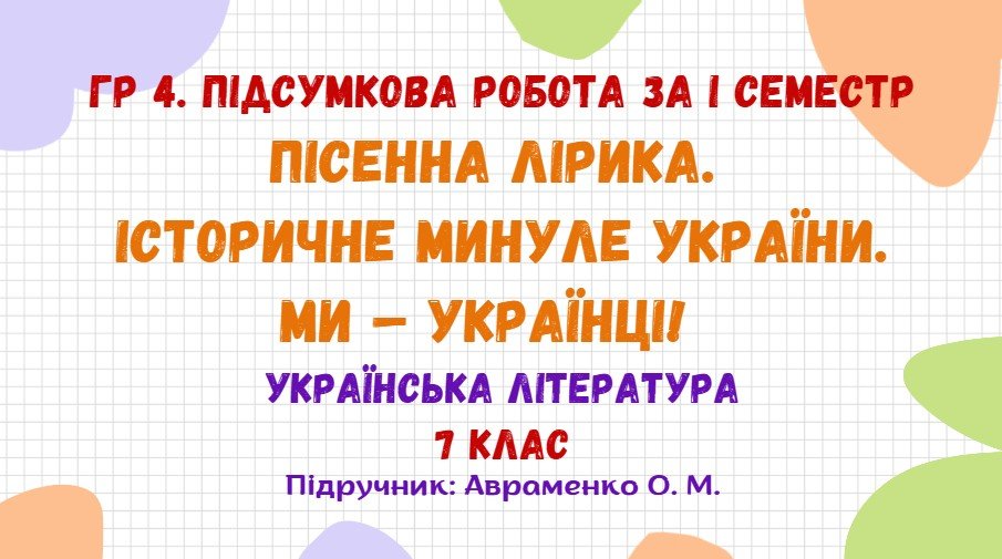 Як купити матеріал «ГР 4. Підсумкова робота за І семестр. Пісенна лірика. Історичне минуле України. Ми – українці! Українська література. 7 клас НУШ (Авраменко О. М.)»?