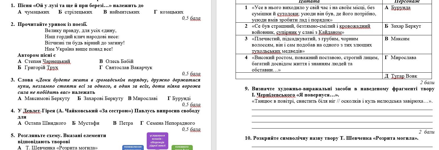 Чи можна замовити матеріал «ГР 4. Підсумкова робота за І семестр. Пісенна лірика. Історичне минуле України. Ми – українці! Українська література. 7 клас НУШ (Авраменко О. М.)» по телефону, або месенжеру?
