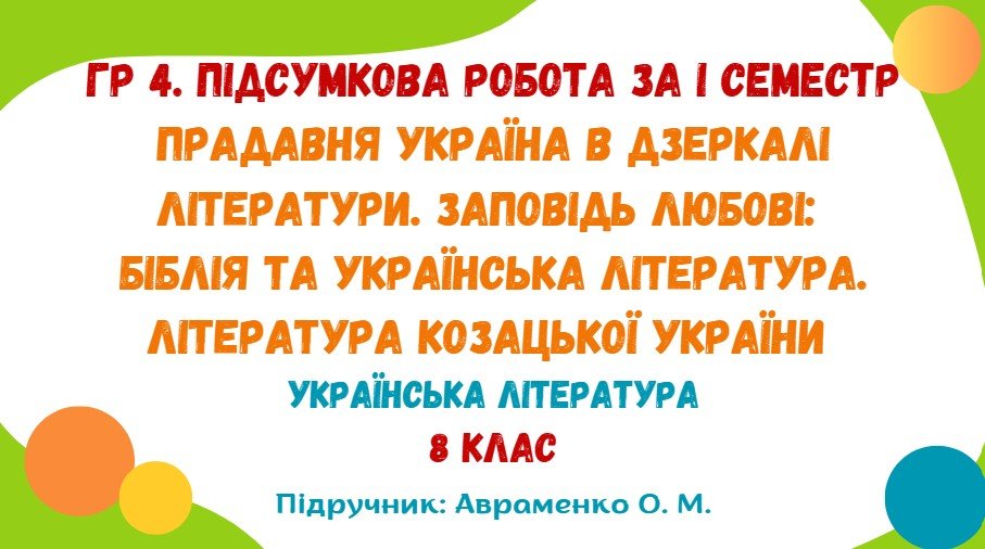 Як купити матеріал «ГР 4. Підсумкова робота за І семестр. Українська література. 8 клас НУШ (підручник: Авраменко О. М.)»?