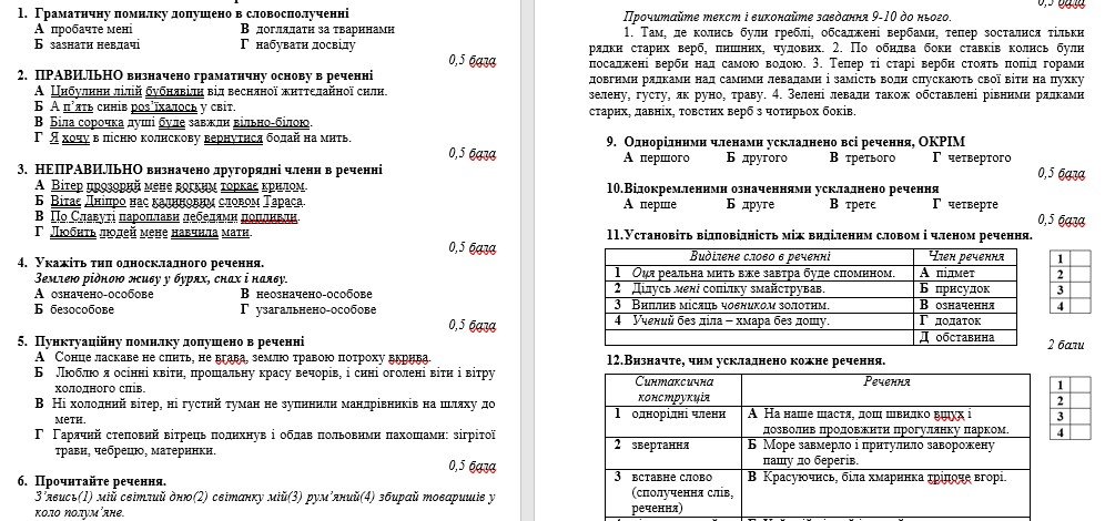 Підсумкова робота відповідає підручнику “Українська мова. 8 клас” (автори: Авраменко О. М. та ін.). Підійде для екстернатної форми навчання.
