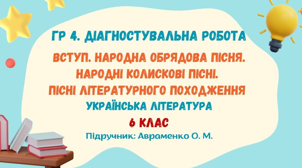 Коли я отримаю матеріал «ГР4. ДР№1. Вступ. Народна обрядова пісня. Народні колискові пісні. Пісні літературного походження. 6 клас (Авраменко О.)»?