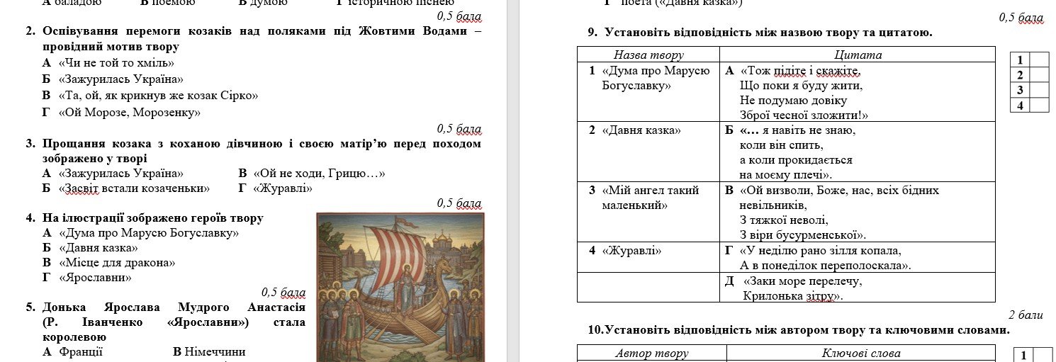 У комплекті є відповіді, критерії оцінювання, самооцінювання.