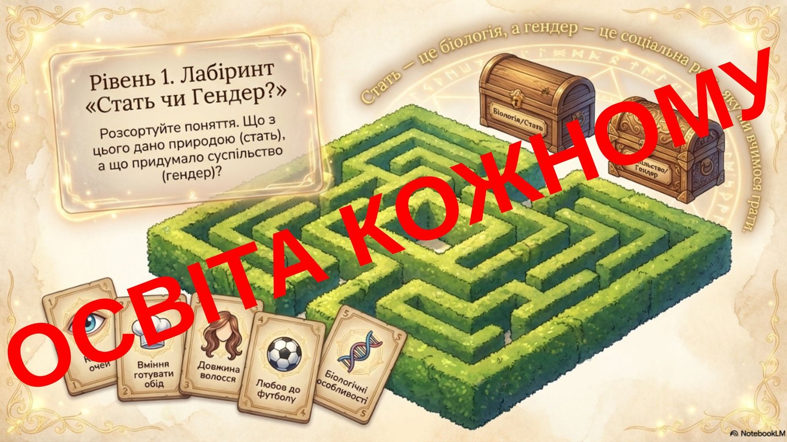 Готовий інтерактивний сценарій квест-гри, який перетворює складну теорію на захопливу детективну пригоду з розвінчування стереотипів. Завдяки візуально привабливим метафорам про «акторські ролі» та «суперсили емоцій», ви зможете легко пояснити дітям принципи рівності, не витрачаючи години на підготовку власного контенту.