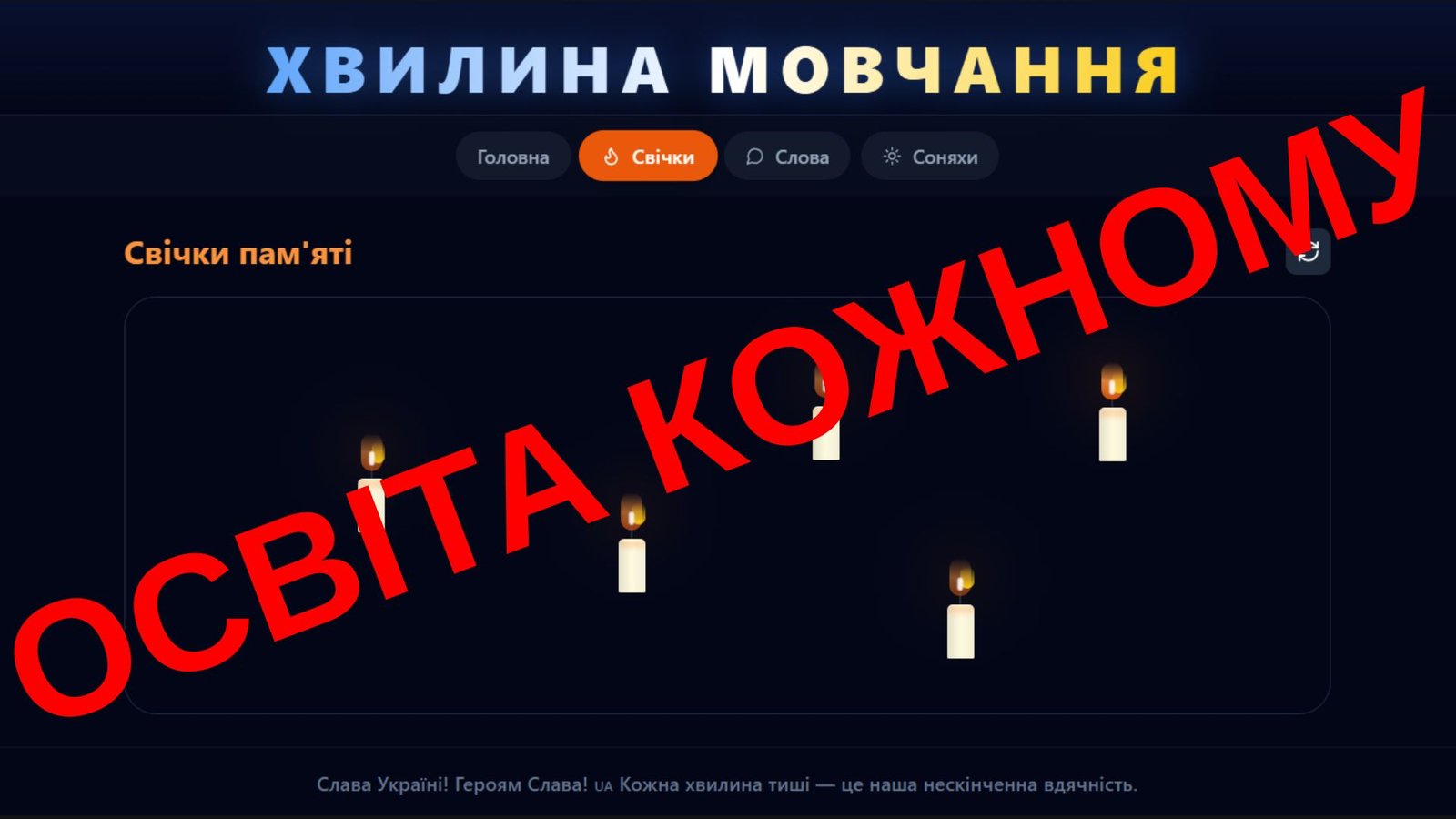 «Запали свічку» – натискаючи на екран, кожна дитина може запалити власну віртуальну свічку як знак шани та пам’яті;