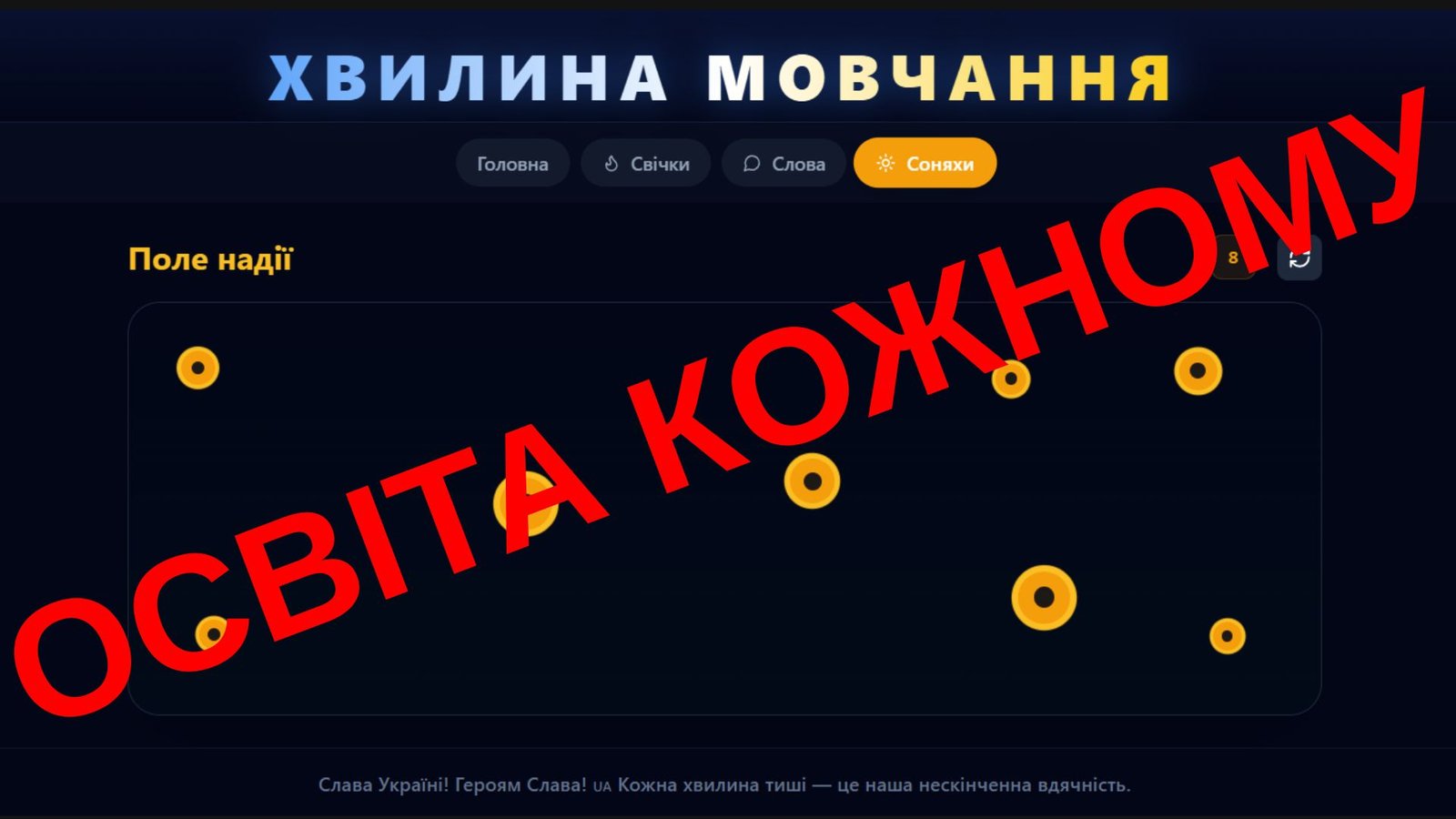 «Соняхи пам’яті» – кожен учасник додає на екран свій сонях як символ пам’яті, вдячності та миру.