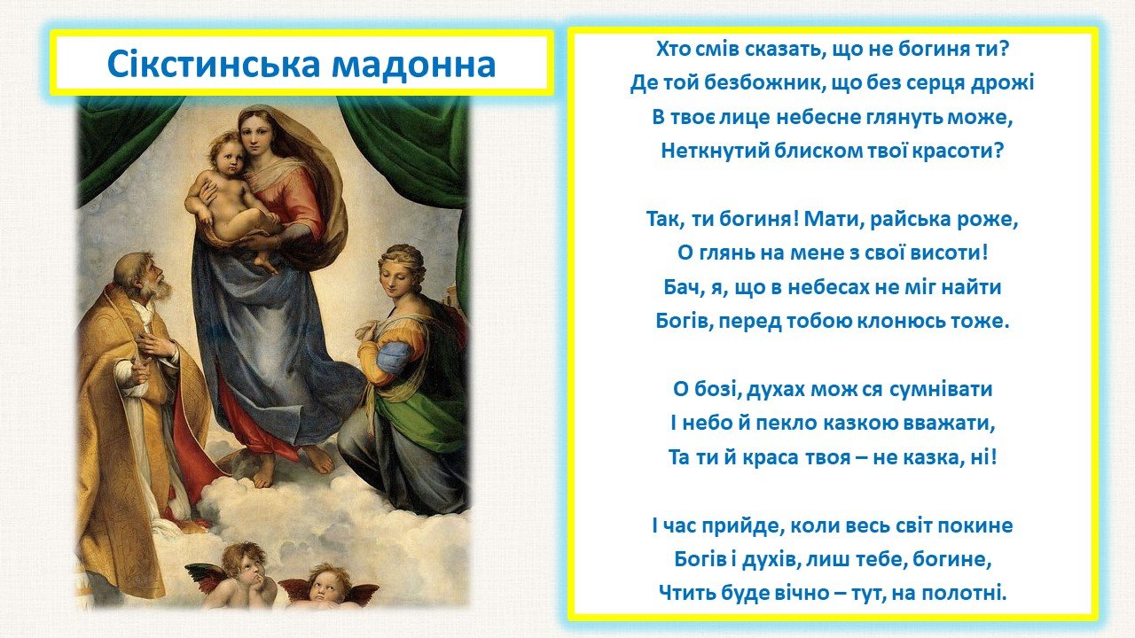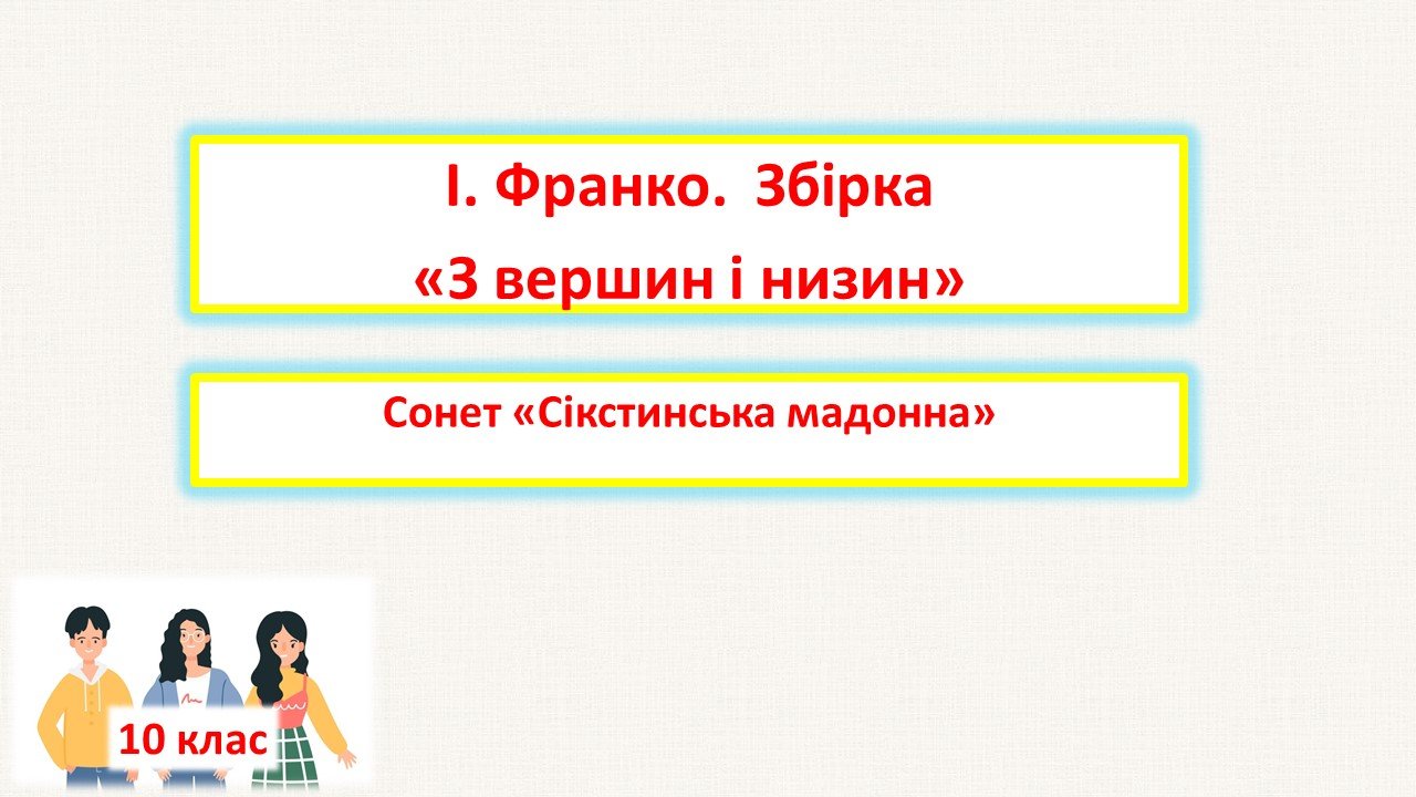 І. Франко.Збірка «З вершин і низин». Сонет «Сікстинська мадонна»