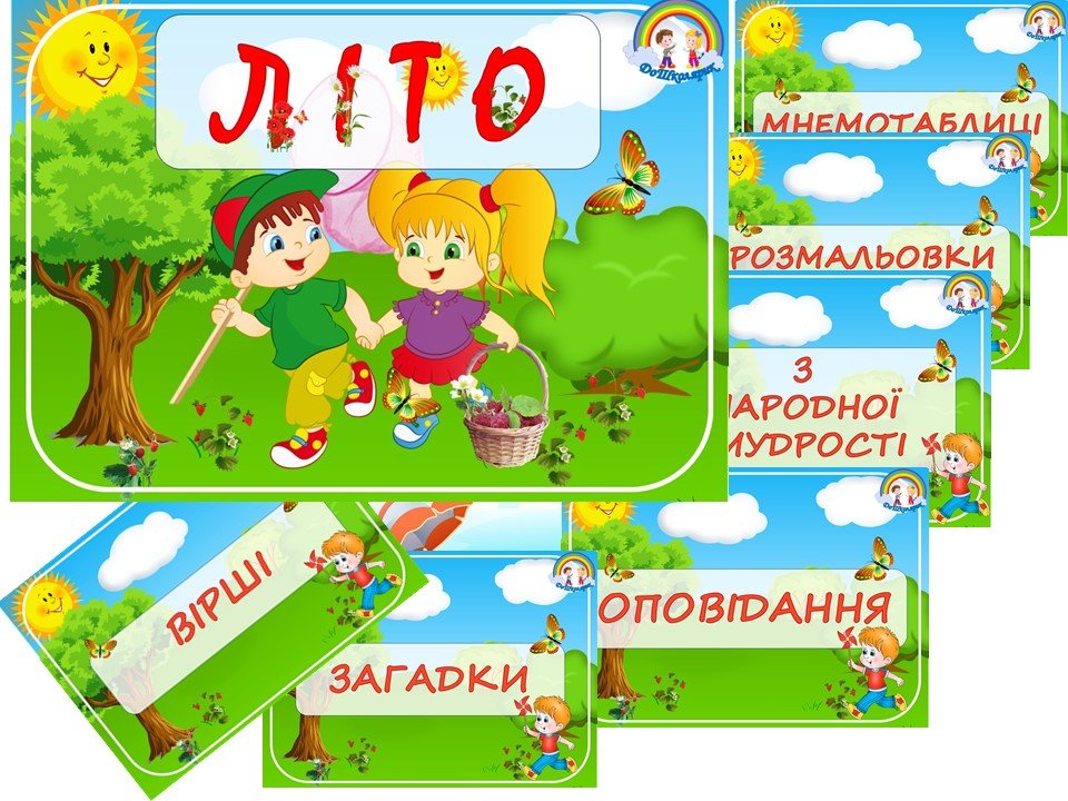 Комплект містить: сюжетні картки, загадки, вірші, оповідання, прислів’я, приказки та прикмети, мнемотаблицю. Всього до друку 52 сторінки.