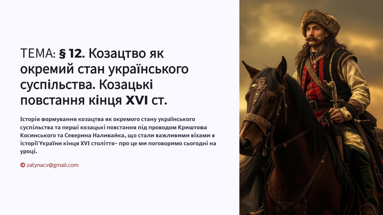 Інтерактивна презентація 8 кл. НУШ § 12. Козацтво як окремий стан українського суспільства. Козацькі повстання кінця XVI ст.