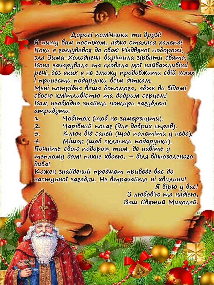 Інтерактивний квест “РІЗДВЯНА ПОДОРОЖ СВЯТОГО МИКОЛАЯ”