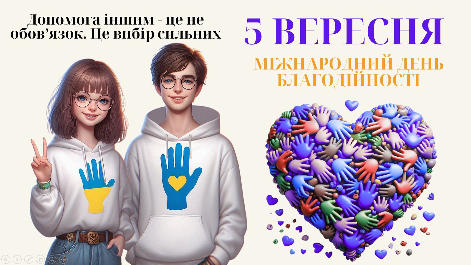 Інтерактивна презентація до Міжнародного дня благодійності (5 вересня): “Допомога іншим – це не обов’язок. Це вибір сильних”