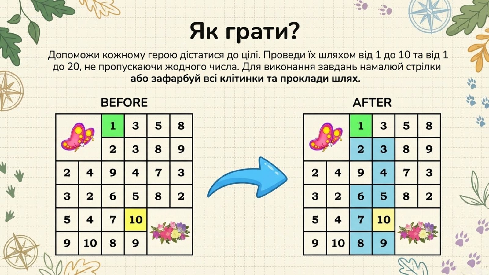 Розвиток критичного мислення: Кожен лабіринт — це логічна задача. Дитина повинна не лише знати наступне число, а й планувати маршрут у просторі, аналізуючи сусідні клітинки.