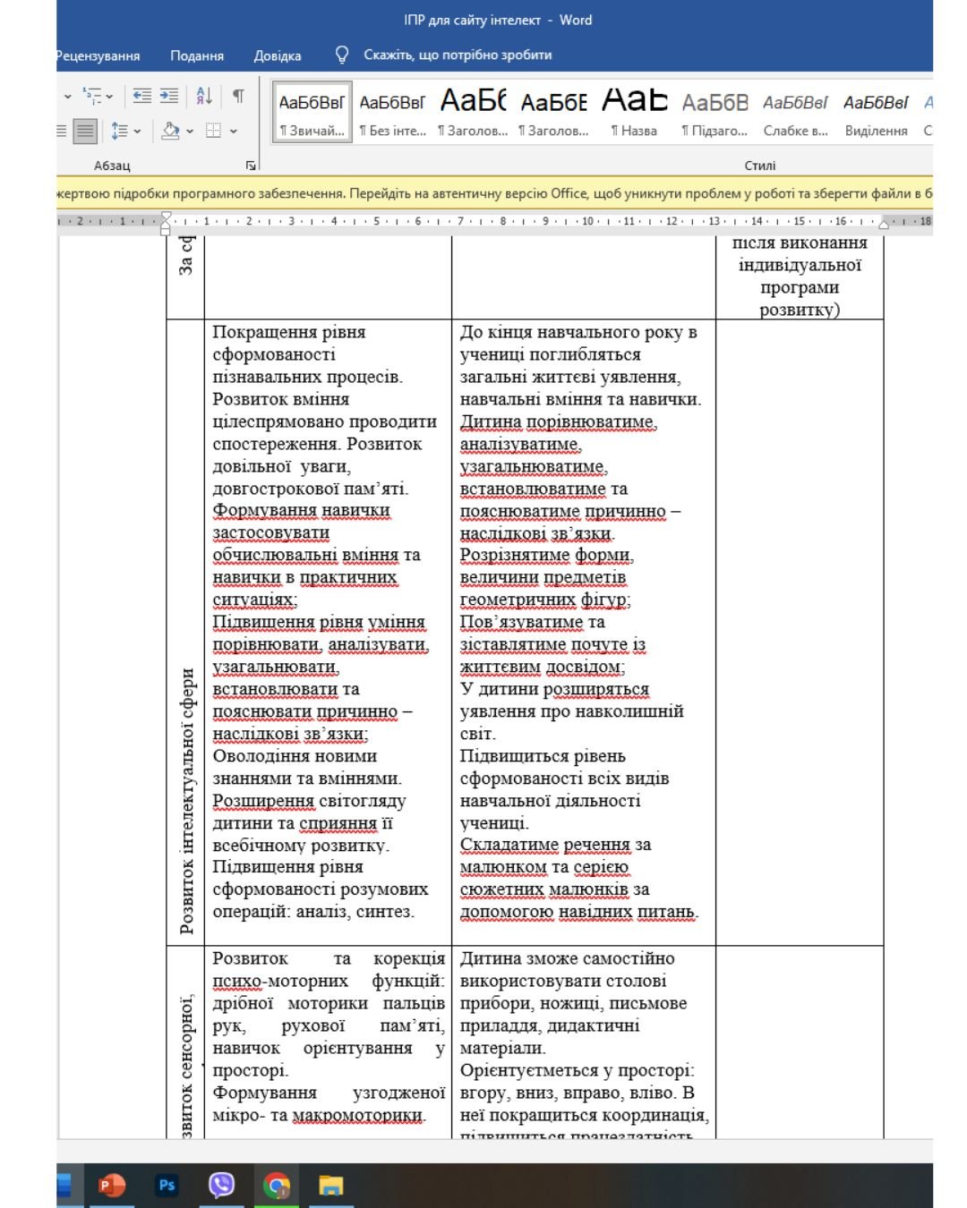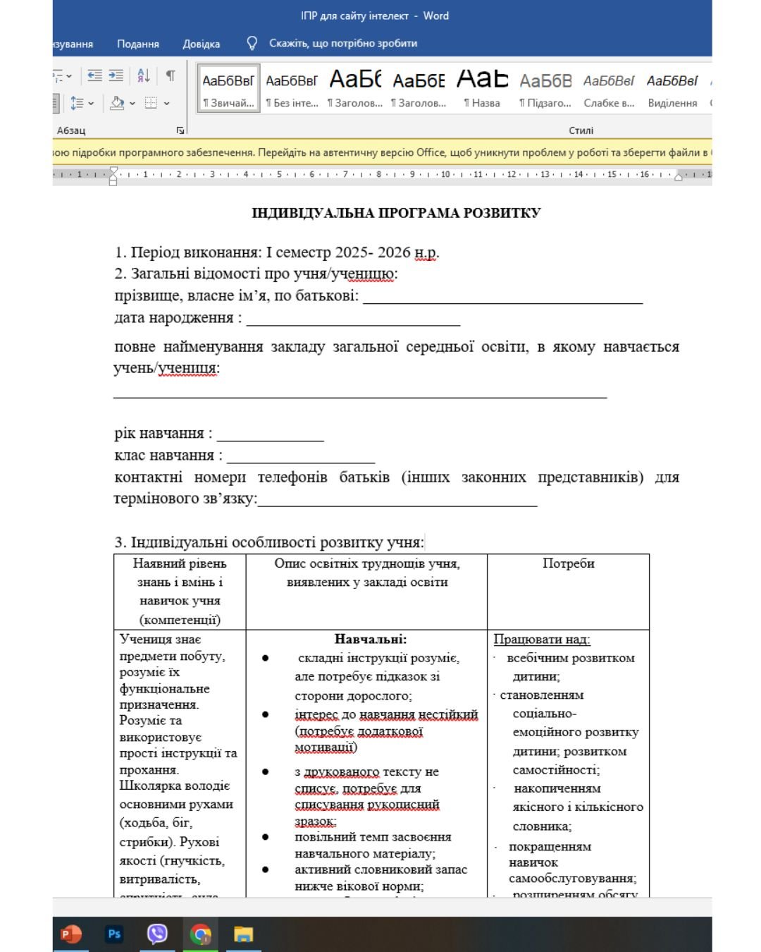 ІПР (індивідуальний план розвитку) 3 клас, 3-4 рівень підтримки, інтелектуальні труднощі