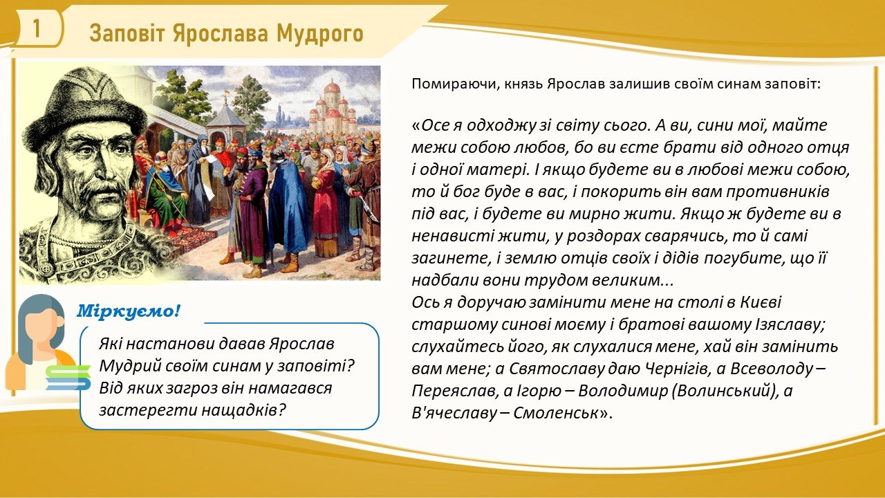Історія України / 7 клас / Презентація до уроку «Русь за правління князя Ярослава Мудрого»