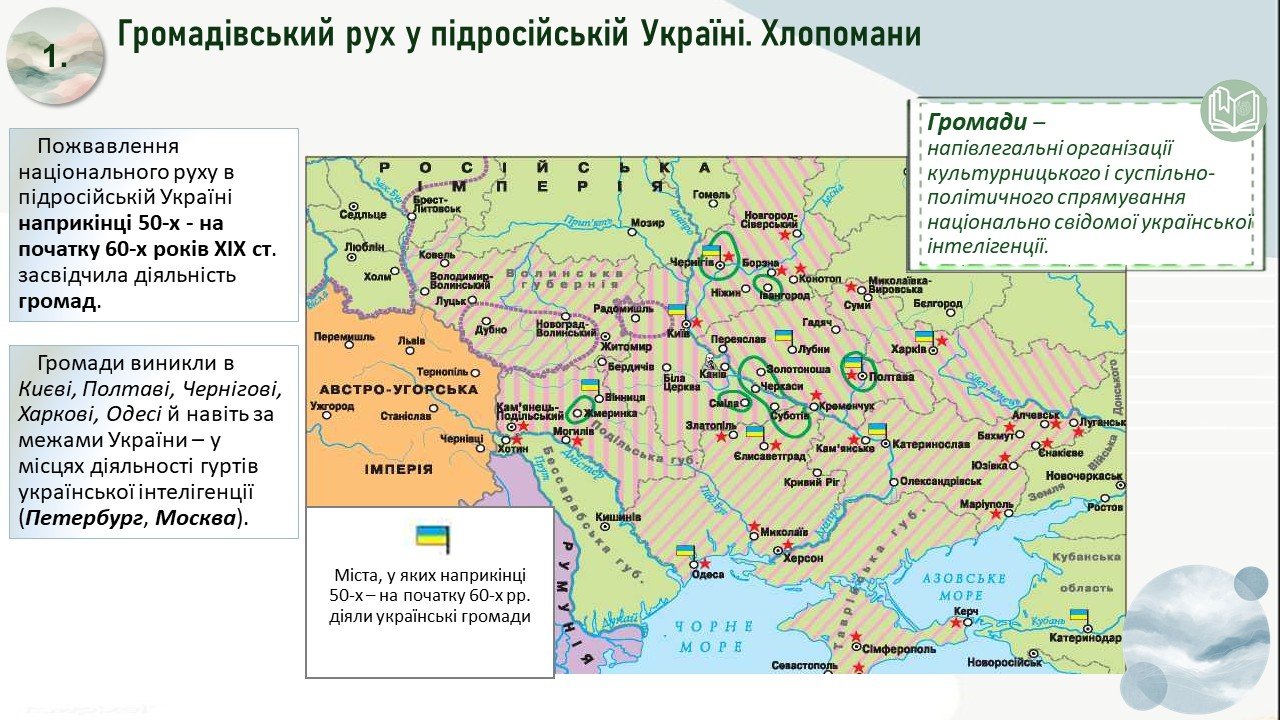Історія України / 9 клас / Презентація до уроку «Національний рух і суспільно-політичне життя у 7...