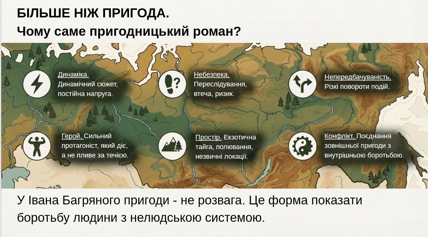 ознаки пригодницького роману й пояснення, чому тут “пригода” — форма показу боротьби
