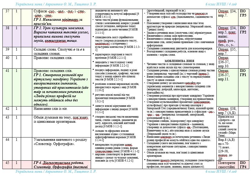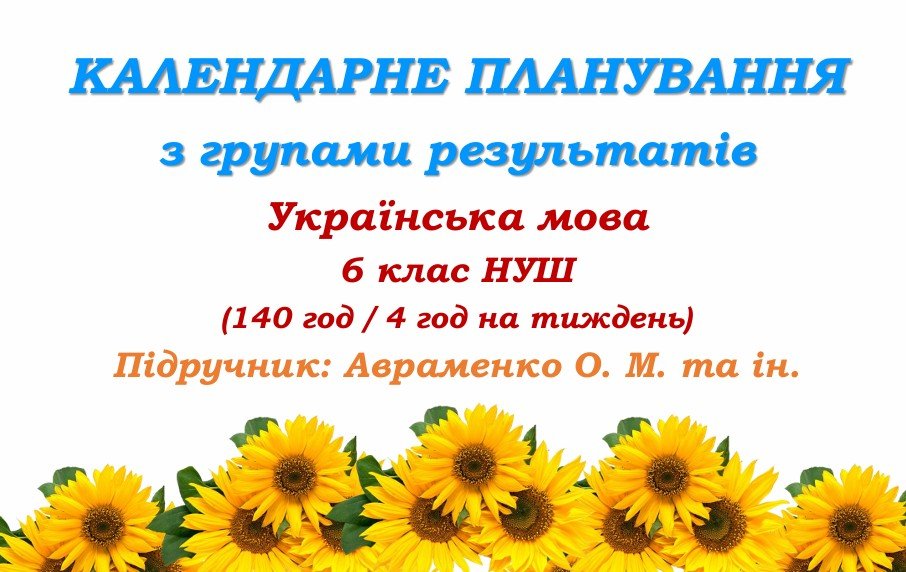 КАЛЕНДАРНЕ ПЛАНУВАННЯ із ГР. Українська мова 8 кл. НУШ.АВРАМЕНКО О. М., ТИЩЕНКО З. Р. (140 год / ...