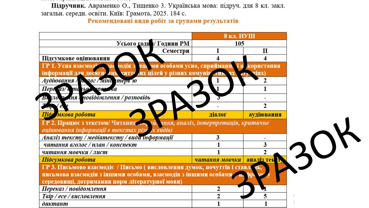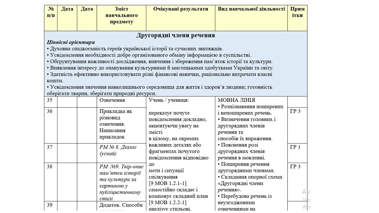 Календарне планування (КТП) з ГР. Українська мова. 8 клас НУШ. Авраменко О. (140 год / 4 год на тиждень)