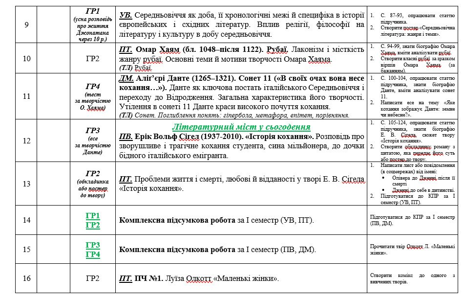 Календарно-тематичне планування з ЗАРУБІЖНОЇ ЛІТЕРАТУРИ з групами результатів для 8 класу НУШ за програмою та підручником О. НІКОЛЕНКО на 35 год.