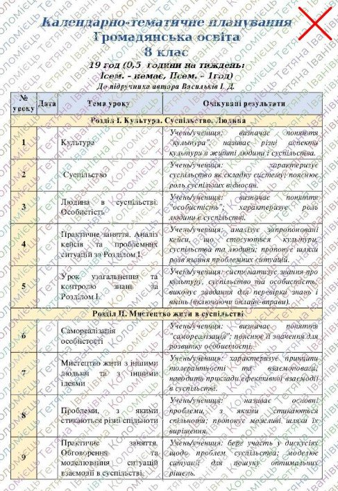 Головне зображення розробки: Календарно-тематичне планування “Громадянська освіта.” 8 клас НУШ (до підручника авт.Васильків) 0,5год/тиждень (Ісем. – немає, ІІсем. – 1год)