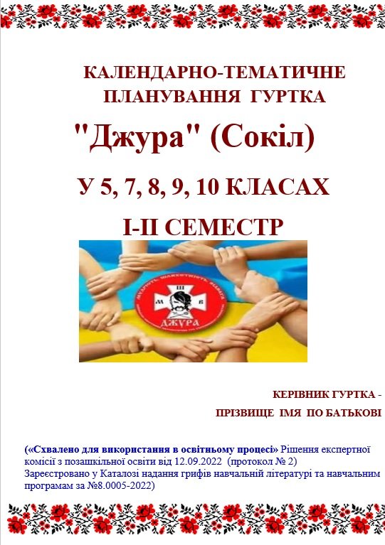 КАЛЕНДАРНО-ТЕМАТИЧНЕ ПЛАНУВАННЯ ГУРТКА КОЗАЦЬКО-ЛИЦАРСЬКИЙ ГАРТ + Програма «Козацько-лицарський г...