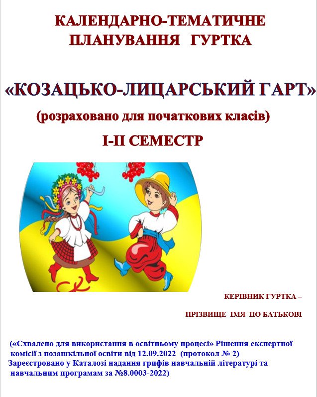 Щоб купити «КАЛЕНДАРНО-ТЕМАТИЧНЕ ПЛАНУВАННЯ ГУРТКА КОЗАЦЬКО-ЛИЦАРСЬКИЙ ГАРТ + Програма «Козацько-лицарський гарт» Військово-патріотичний напрямДля початкових», потрібно додати матеріал до кошика та оплатити замовлення.