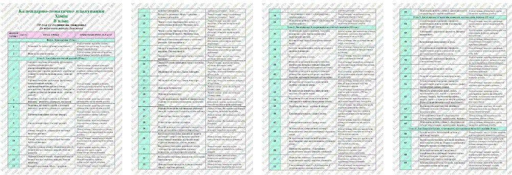 Календарно-тематичне планування “Хімія” 8 клас НУШ до підручників авт.Лашевська/Попель 2 год/тиждень