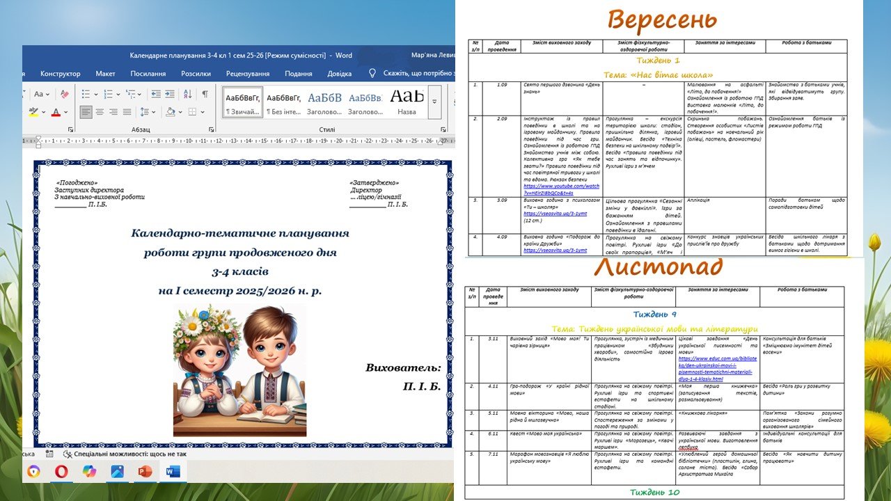 Календарно-тематичне планування роботи групи продовженого дня для 2-3 класів на 1 семестр 2025-20...
