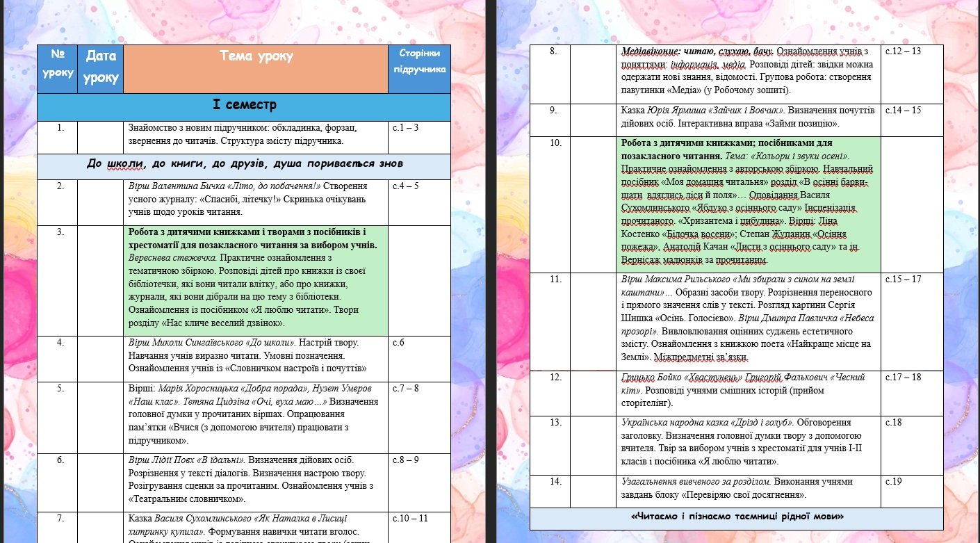 Матеріали «Календарно-тематичне планування уроків читання 2 клас ( О. Савченко)» будуть надіслані в електронному вигляді на вашу поштову скриньку одразу після оплати.