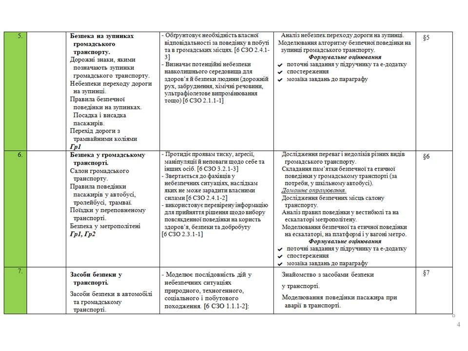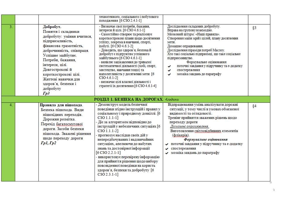 Календарно-тематичне планування “Здоров’я, безпека та добробут”. 7 клас, 1,5 (5...