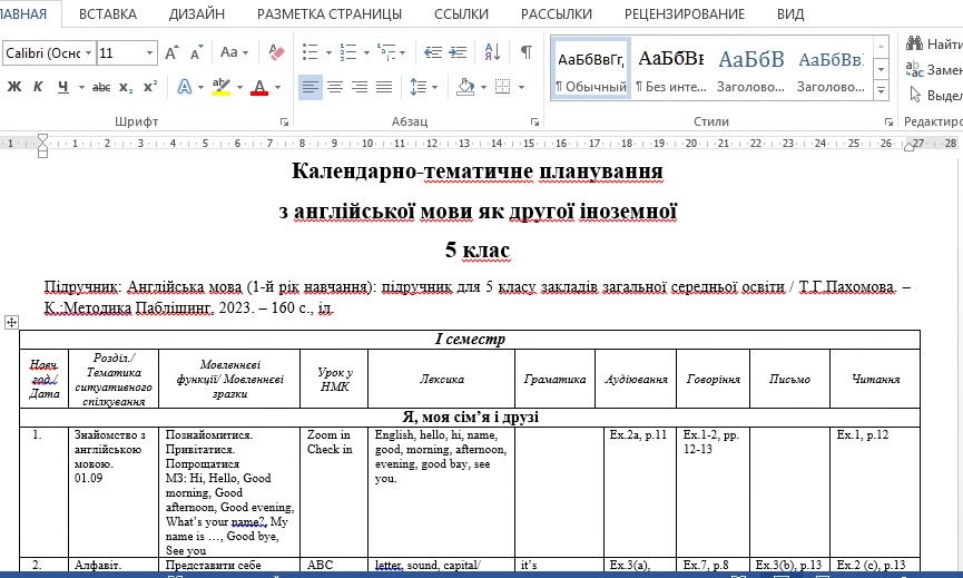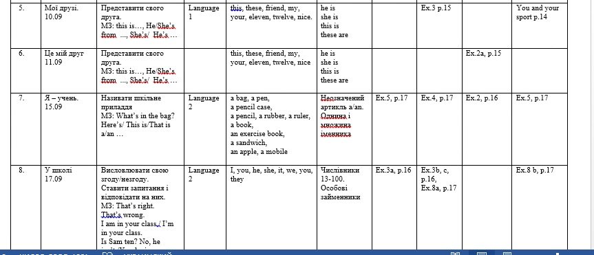 5 КЛАС. НУШ. КАЛЕНДАРНО-ТЕМАТИЧНЕ ПЛАНУВАННЯ З АНГЛІЙСЬКОЇ МОВИ У ФОРМАТІ WORD + EXCEL (ДЛЯ ЕЛЕКТ...
