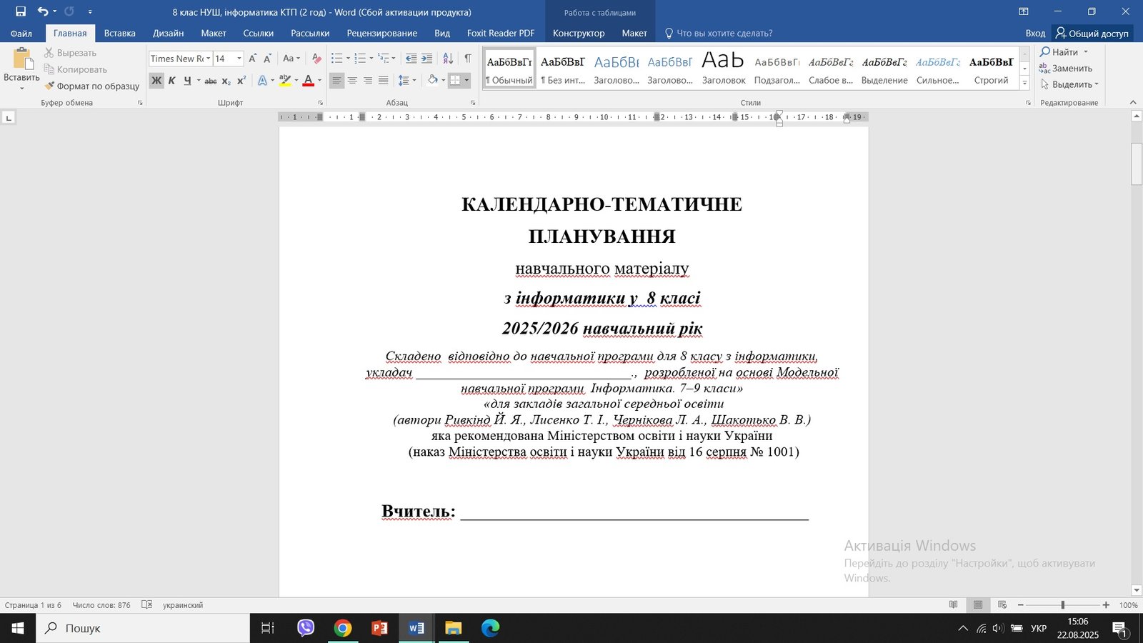 Чи можна замовити матеріал «Календарно-тематичне планування з інформатики для 8 класу НУШ за програмою Ривкінда Йосипа (1,5 год)» по телефону, або месенжеру?