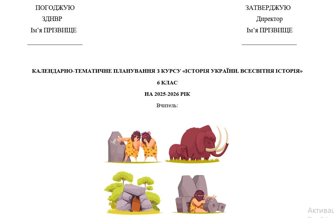 Календарно-тематичне планування «Історія України. Всесвітня історія. Громадянська освіта. 6 клас»...