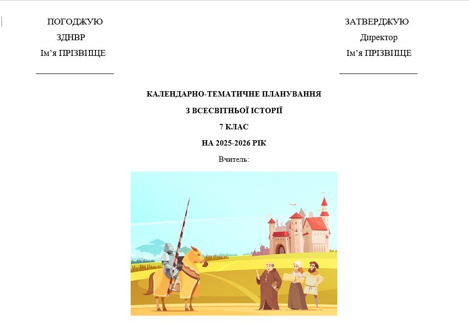 Матеріали «Календарно-тематичне планування з всесвітньої історії 7 клас (Пометун)» будуть надіслані в електронному вигляді на вашу поштову скриньку одразу після оплати.