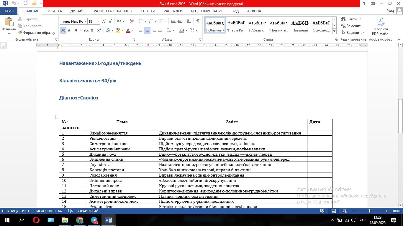 Календарний корекційний план (ЛФК) 2026 Діагноз: сколіоз.