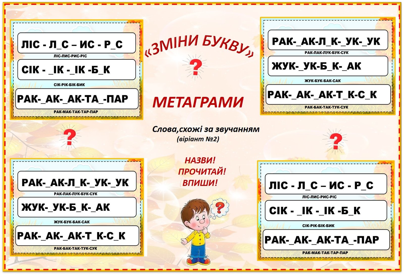Картки для швидкого розчитування слів. Метаграми (2гри)