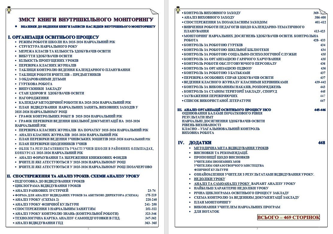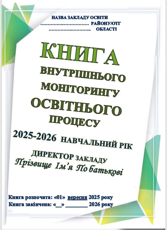 КНИГА ВНУТРІШНЬОГО МОНІТОРИНГУ ОСВІТНЬОГО ПРОЦЕСУ на 2025-2026 НАВЧАЛЬНИЙ РІК (464 сторінки)(ДЛЯ ДИРЕКТОРА ШКОЛИ ТА ЗАСТУПНИКА ДИРЕКТОРА