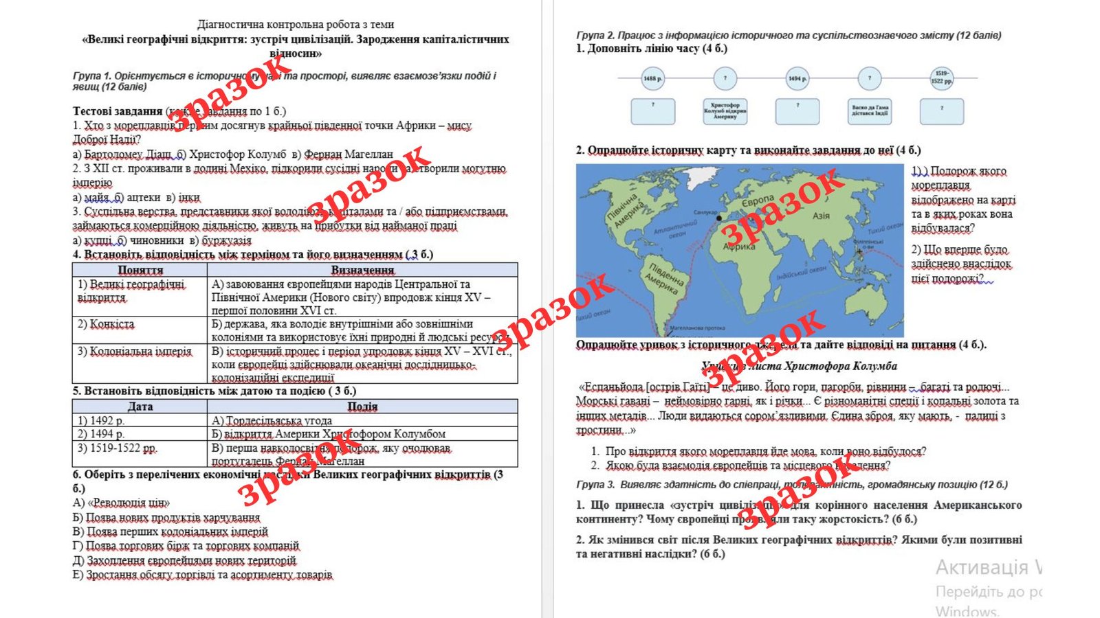Комплексна діагностична контрольна робота з теми «Великі географічні відкриття: зустріч цивілізацій. Зародження капіталістичних відносин» (І.Васильків