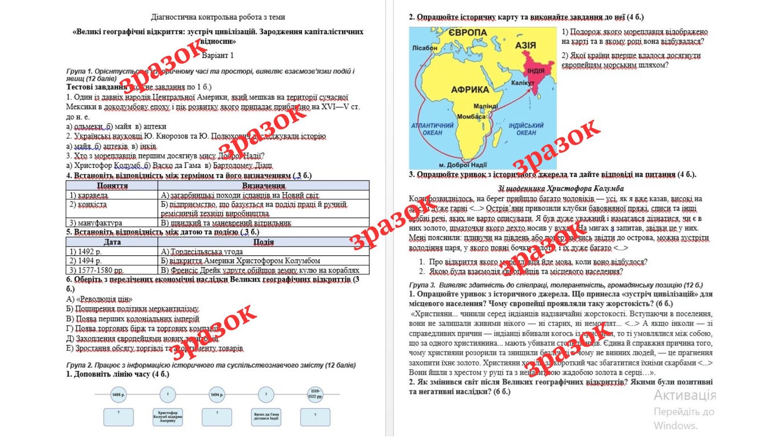 Коли я отримаю матеріал «Комплексна діагностична контрольна робота з теми «Великі географічні відкриття: зустріч цивілізацій. Зародження капіталістичних відносин» (О.Пометун)»?