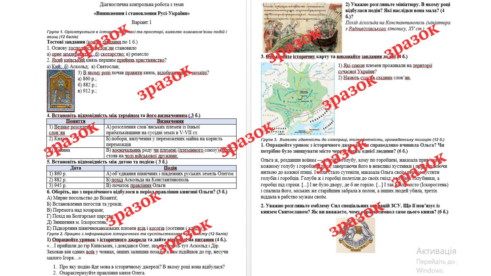 Комплексна діагностична контрольна робота з теми «Становлення перших держав Середньовіччя»(Пометун)