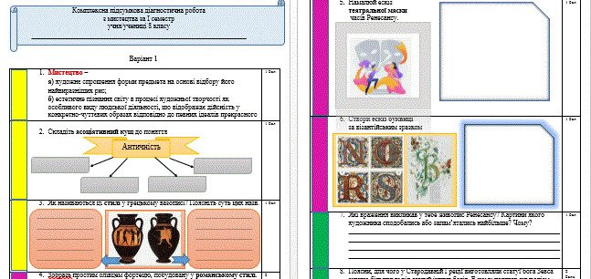 Комплексна діагностична робота з інтегрованого курсу “Мистецтво” 7 клас І семестр (у ...