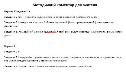 - Присутній МЕТОДИЧНИЙ КОМЕНТАР ДЛЯ ВЧИТЕЛЯ стосовно деяких завдань для зручної перевірки.
