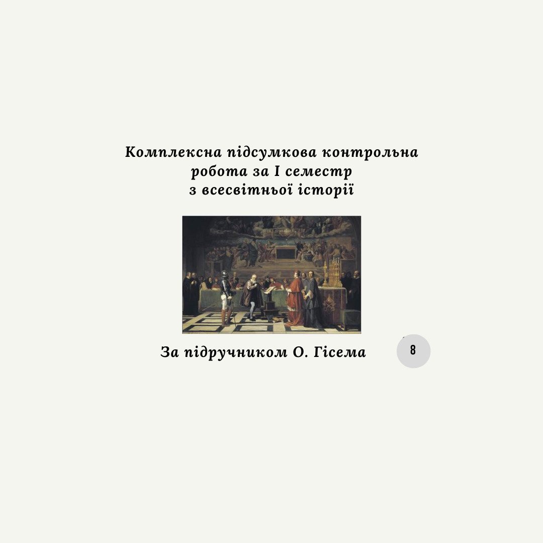 Як купити матеріал «Комплексна підсумкова контрольна робота за I семестр із всесвітньої історії 8 клас (за О.Гісемом) за групами результатів»?