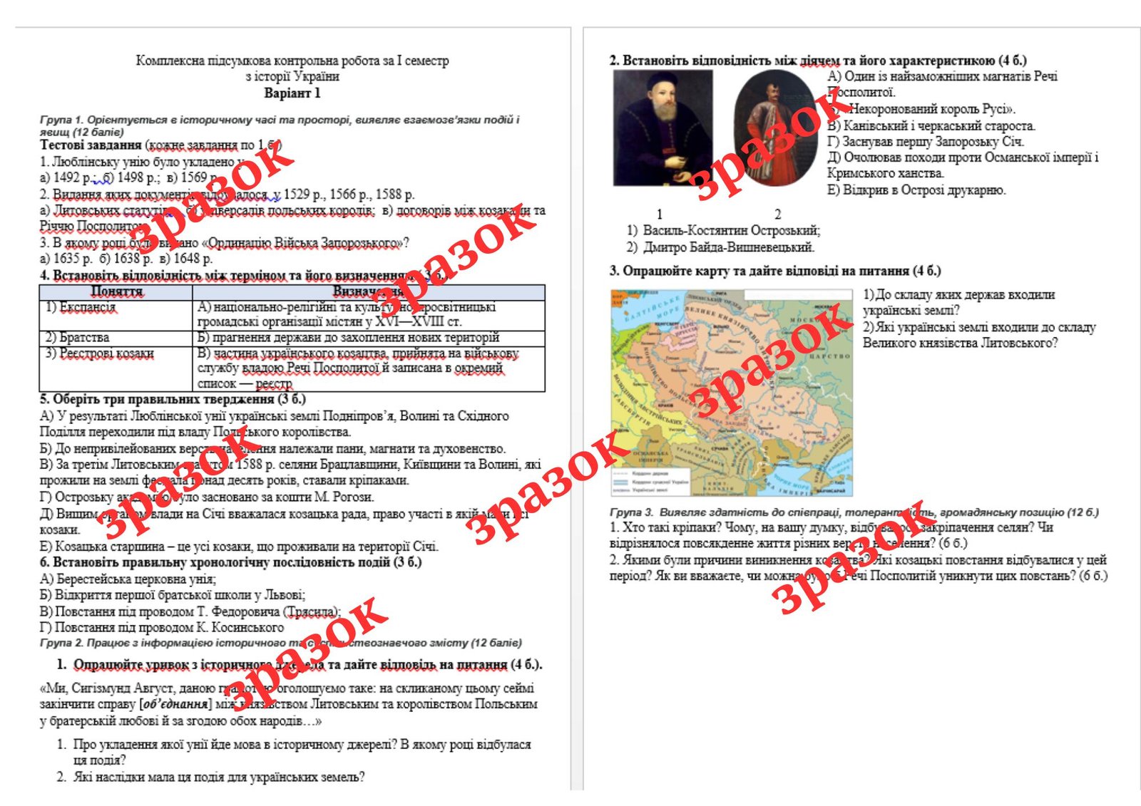 Як купити матеріал «Комплексна підсумкова контрольна робота за I семестр з історії України (за О.Пометун)»?