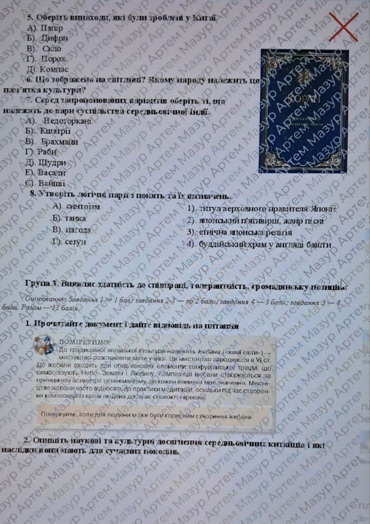 Комплексна підсумкова робота 7 клас з розділу 5 «ДУХОВНИЙ СВІТ СЕРЕДНЬОВІЧЧЯ» за ГР1, ГР2, ГР3