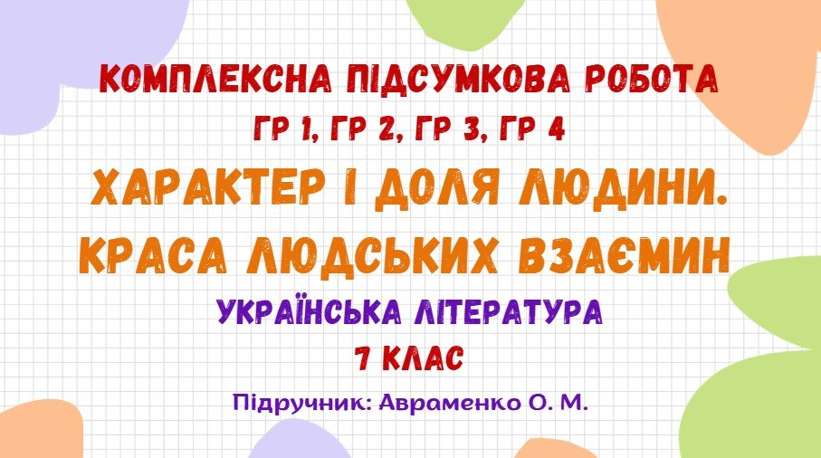 Як купити матеріал «Комплексна підсумкова робота №3. Характер і доля людини. Краса людських взаємин. Українська література. 7 клас НУШ (підручник: Авраменко О. М.)»?