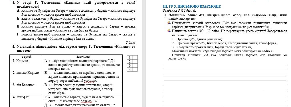 Чи можна замовити матеріал «Комплексна підсумкова робота №3. Характер і доля людини. Краса людських взаємин. Українська література. 7 клас НУШ (підручник: Авраменко О. М.)» по телефону, або месенжеру?