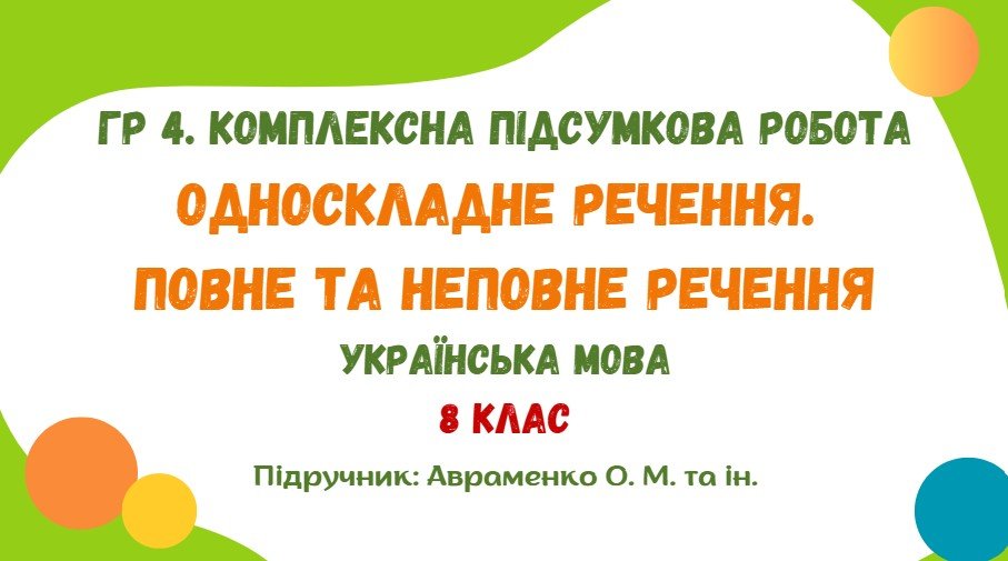 Як купити матеріал «Комплексна підсумкова робота №4. Односкладне речення. Повне та неповне речення. 8 клас (підручник: Авраменко О. М. та ін.)»?