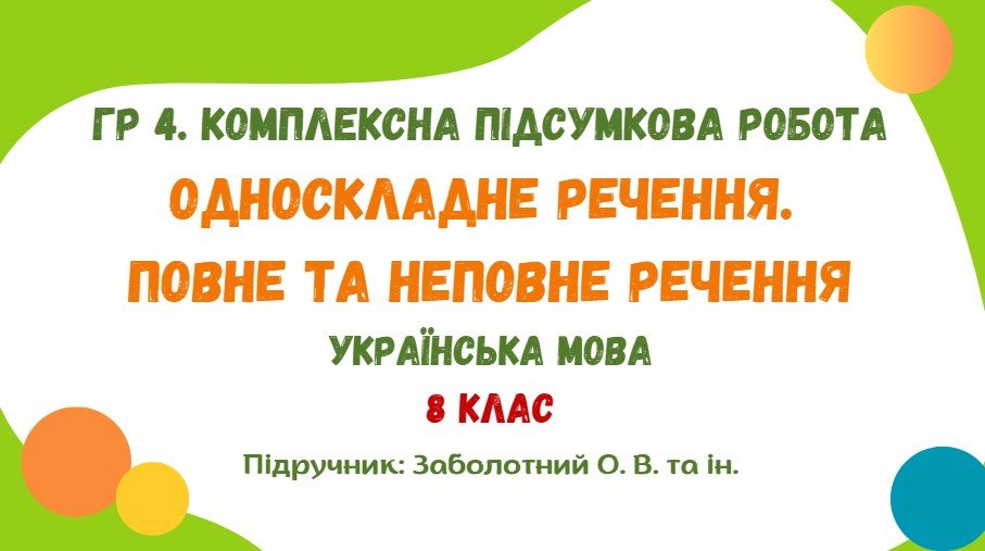 Як купити матеріал «Комплексна підсумкова робота №4. Односкладне речення. Повне та неповне речення. 8 клас (підручник: Заболотний О. В. та ін.)»?