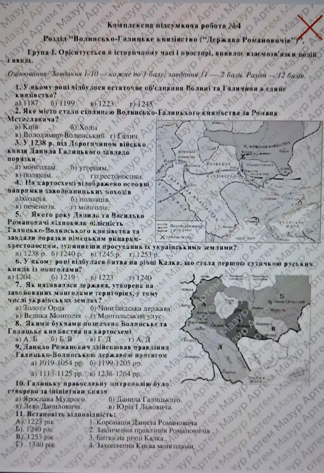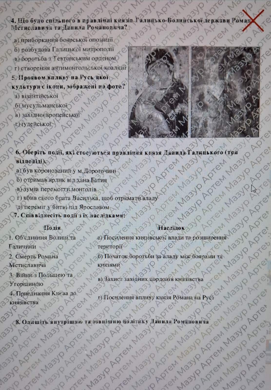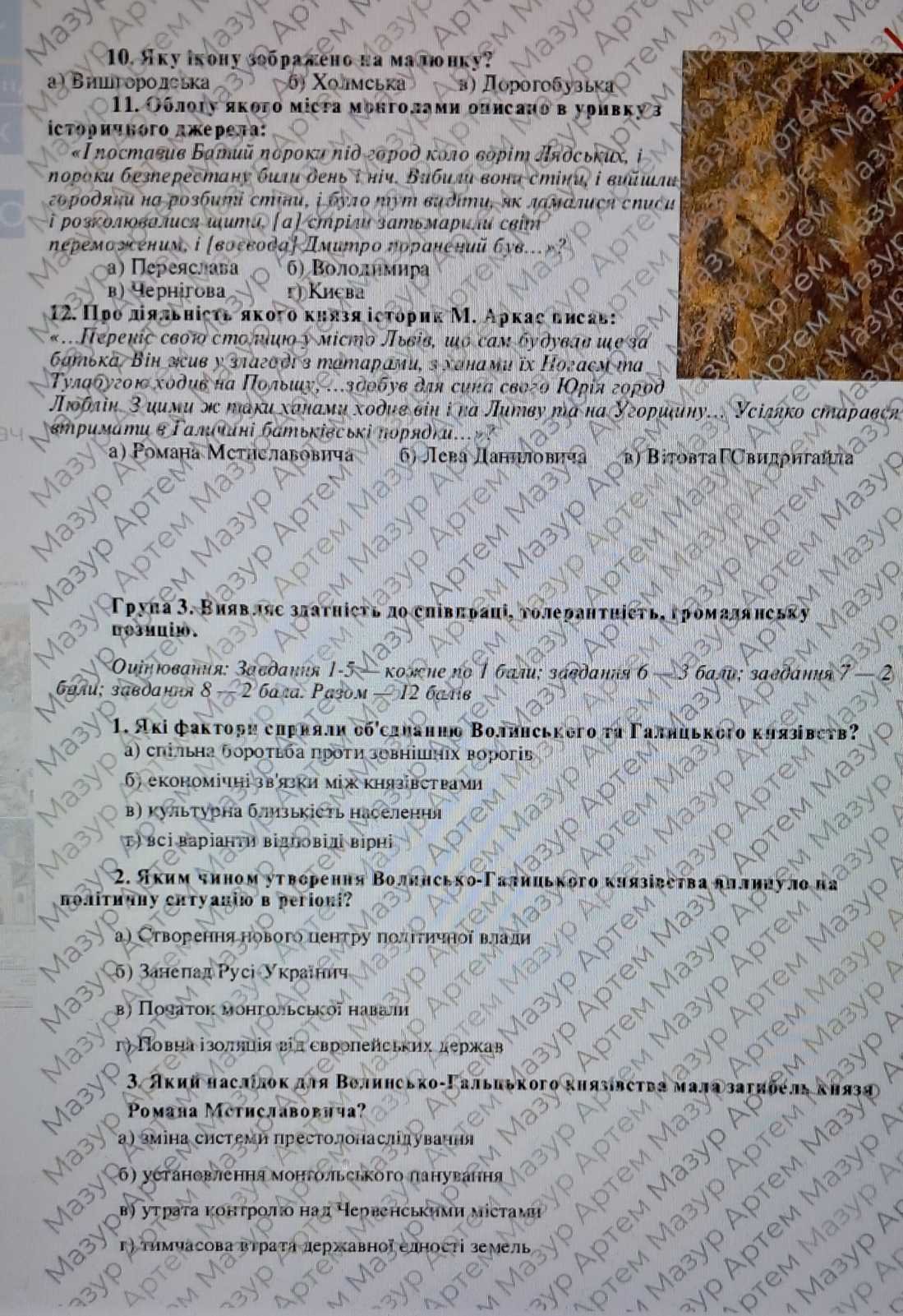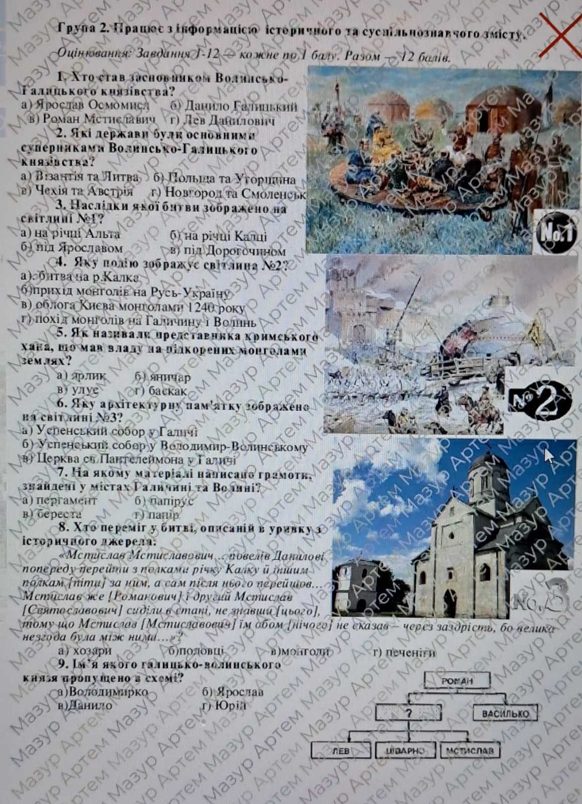 Діагностична контрольна робота з теми «Волинсько-Галицьке князівство («держава Романовичів»)» Щупак